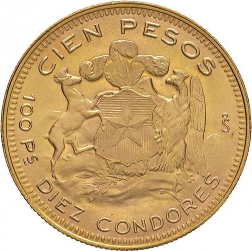 Золотая монета 100 песо Чили, 20,34 г