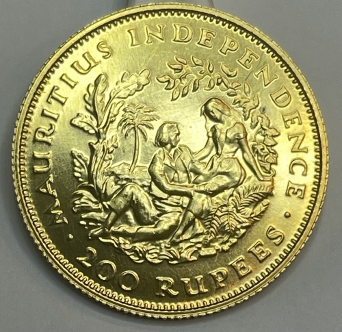 Золотая монета 200 рупий "Независимость Маврикия" 1971г., 15,579г., Au 917