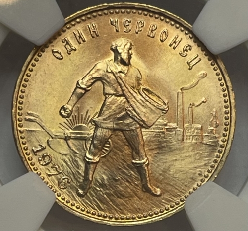 Золотая монета Червонец Сеятель 1976г., в слабе NGS MS 67